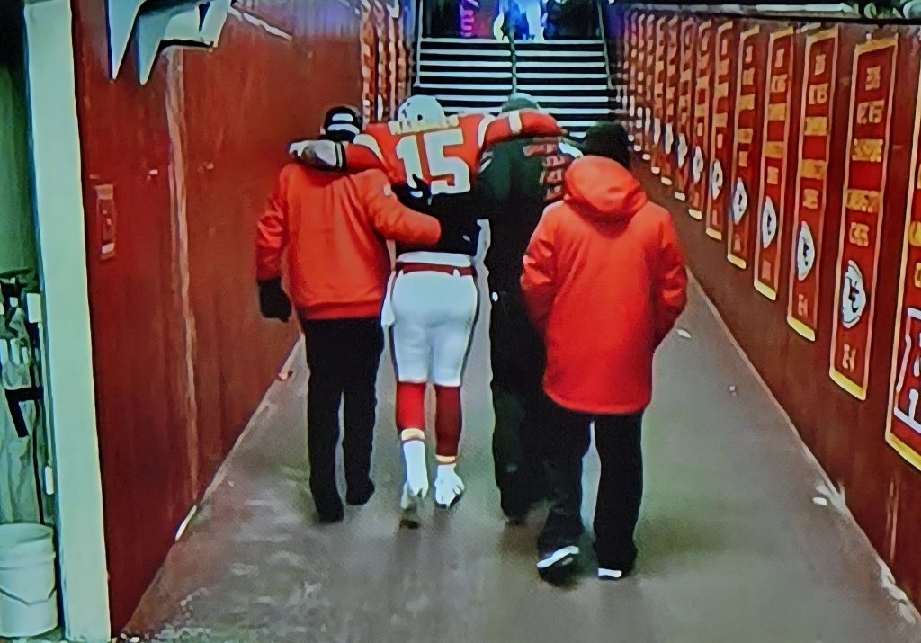 “It didn’t look good,” head coach Andy Reid said when asked about the quarterback’s condition. “We’ll just see where it goes.”